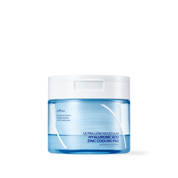 A cooling pad infused with 10 types of hyaluronic acid and zinc hyaluronic acid to soothe skin with double-sided pads the gauze side for skin texture care and the jelly side for moisturization that boost hydration