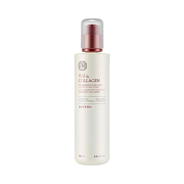 Pomegranate and Collagen Volume Lifting Toner - 160ml Get dewy soft skin with this marine collagen infused toner designed to reduce signs of aging and brighten the skin simultaneously. It contains pomegranate extracts the help boost the skin's vitality, rebalance the pH levels of the skin and refine pores. An anti-aging skin care that increases the skins resilience through the interaction of pomegranate estrogen and marine collagen. Features: This toner belongs to a "volume lifting line" aiming to firm and lift sagging facial features. It claims to achieve this through a combination of pomegranate extract and marine collagen. The formula is advertised to nourish the skin and promote a healthy glow. Benefits: Claims to lift, volumize, and plump the skin. Seeks to improve skin resilience and reduce wrinkles. Mentions potential skin brightening effects from pomegranate extract.